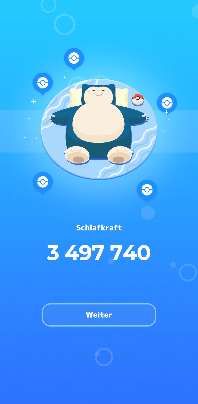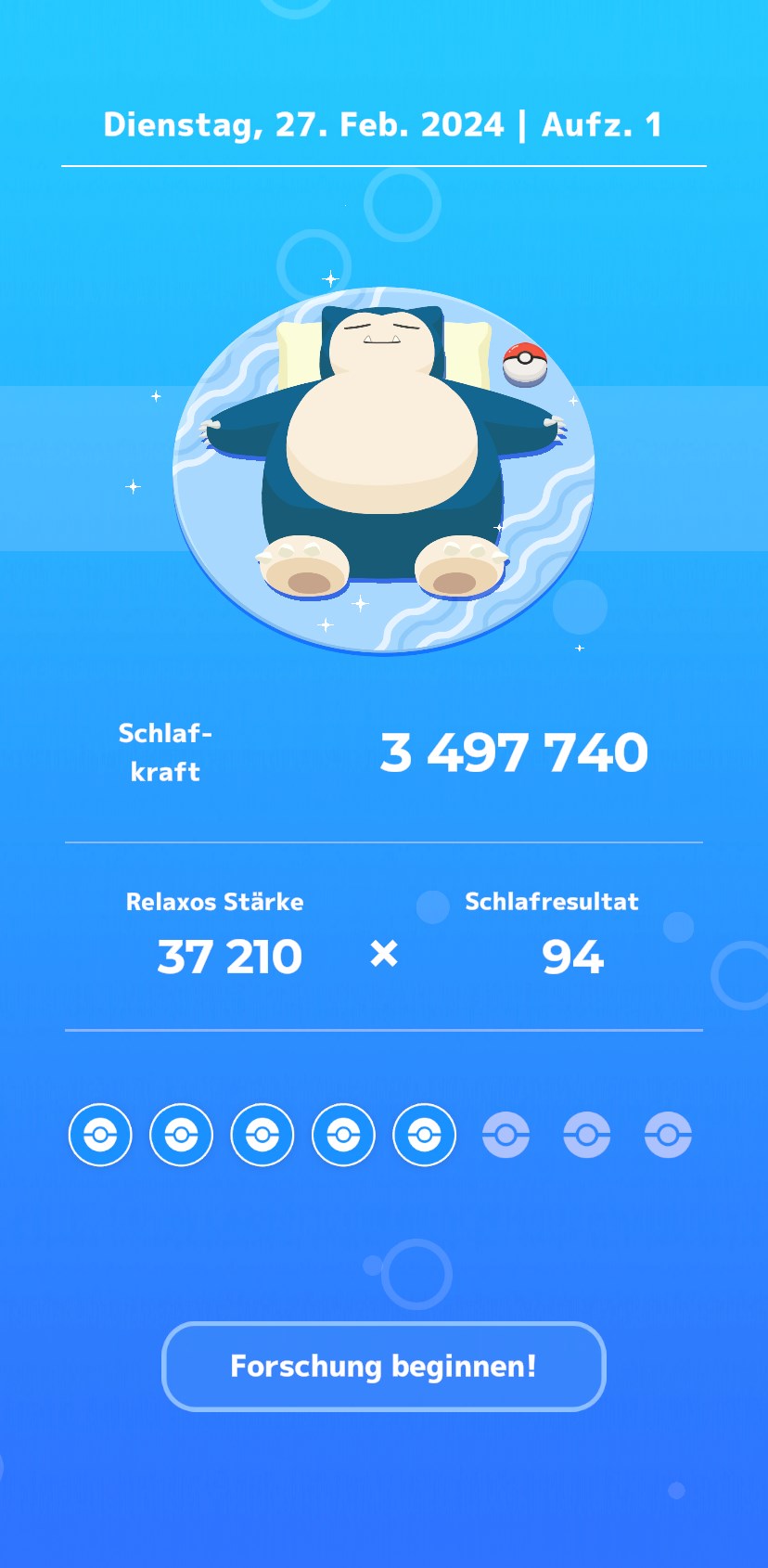 Übrigens startet jeden Montag eine neue wöchentliche Schlafforschung. Zu Beginn einer Schlafforschung könnt ihr immer einen neuen Ort auswählen, um einem neuen Relaxo zu begegnen und es zu stärken. Abhängig von Gebiet und Wochentag ändern sich auch die Pokémon, die ihr entdecken könnt.